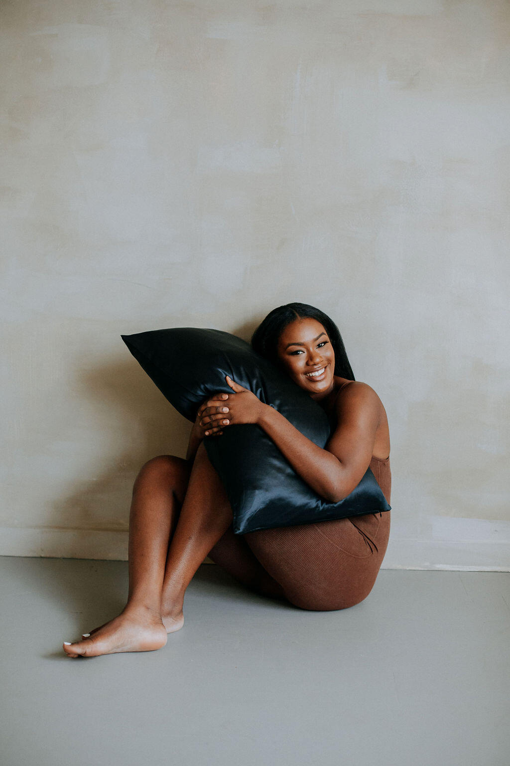 Lavez les taies d'oreiller en soie à l'envers à la main dans de l'eau froide OU lavez-les à la machine à l'eau froide sur le cycle délicat/en mode soie